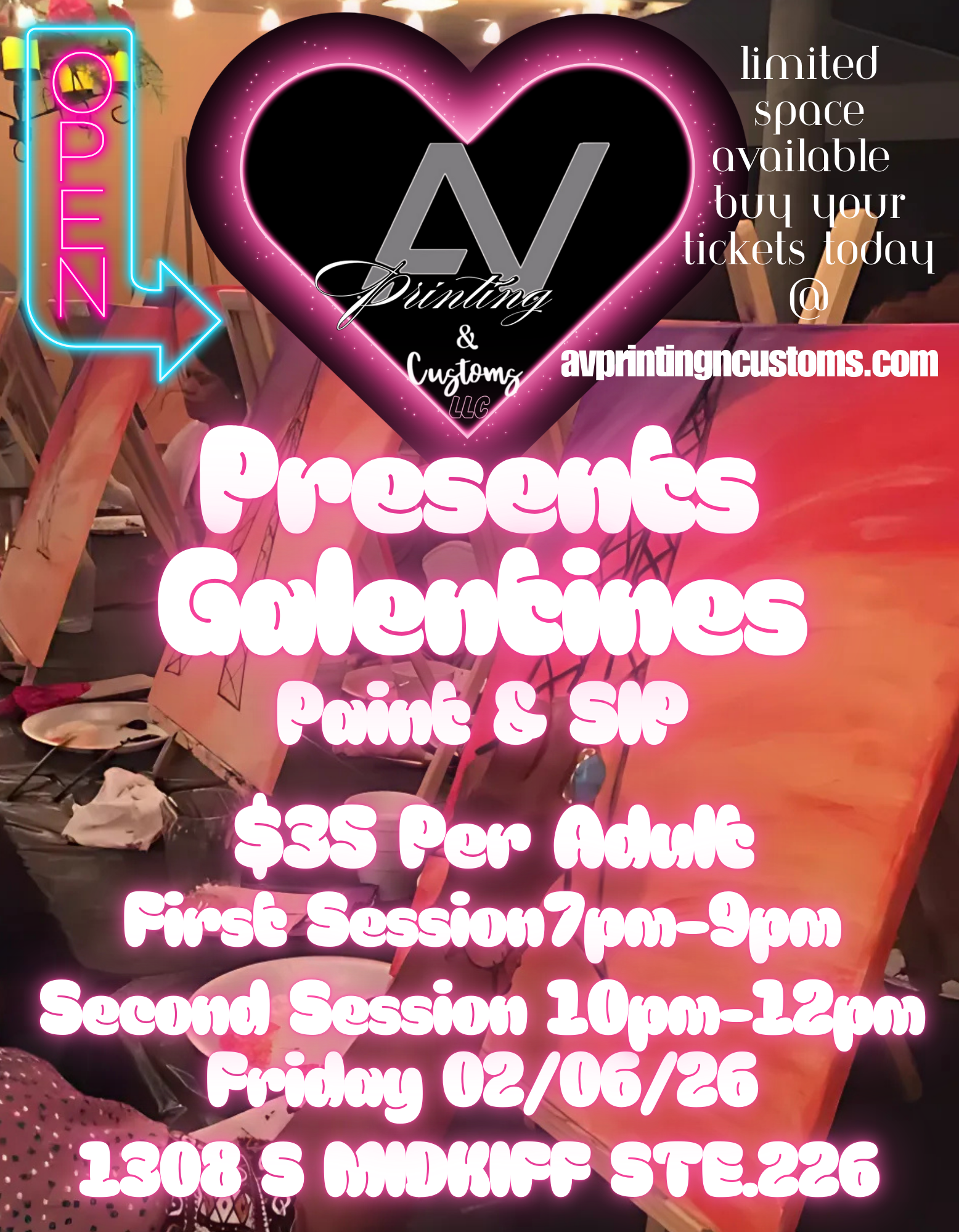 Gather your friends for an unforgettable evening of creativity and relaxation. Our Sip & Paint event combines the joy of artistic expression with your favorite beverages in a laid-back, judgment-free atmosphere. Whether you're a seasoned artist or picking up a brush for the first time, while you unwind with friends. Create a masterpiece to take home, make lasting memories, and discover your inner artist—all in one delightful night. Perfect for date nights, team building, or girls' night out.